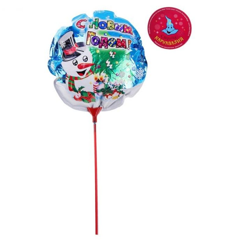 Palloncino di carta stagnola "Pupazzo di neve" 30 * 30 c con bastoncino. Per aria o gas elio