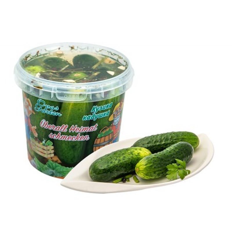 Ingredienti: cetrioli, acqua, aneto, sale, pepe, alloro, prezzemolo, aglio, conservante E200, E211.