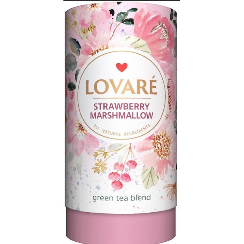 Tè "Lovare" foglia verde, marshmallow alla fragola, petali di fiori e aroma di fragola (80g)