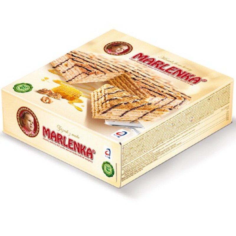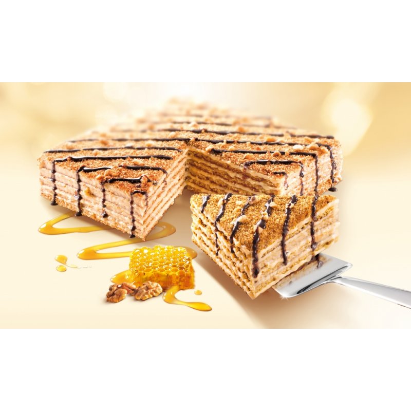 Ingredienti: LATTE condensato, farina di FRUMENTO, grassi vegetali, zucchero, melange liquido di UOVA, miele 3,8%, LATTE condensato con cacao, NOCI 1,3%, agente lievitante: E500