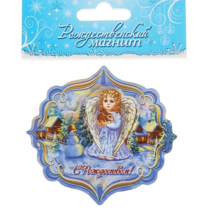 Calamita "Buon Natale! Angelo con coniglietto", 8,2 x 7,7 cm