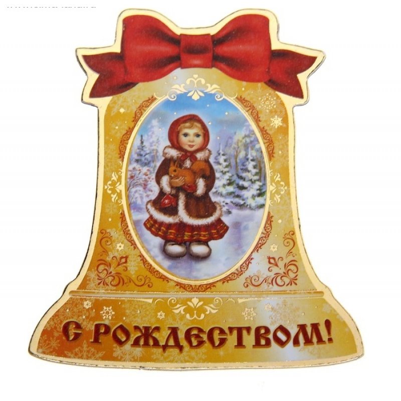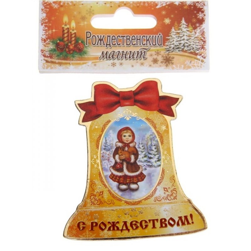 Магнит в форме колокола "С Рождеством! Девочка с белочкой" выполнен из полимера с ярким изображением и золотым теснением. Форма колокола и блестящие узоры создают эффект рождественского чуда. Магнит будет отличным знаком внимания в праздник Рождества.