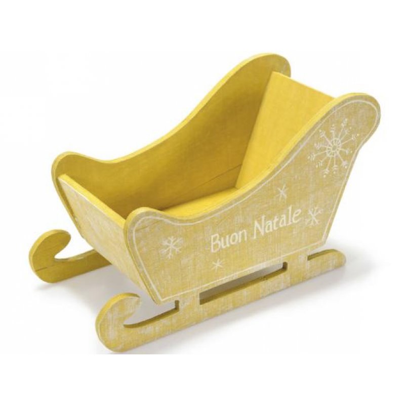 Slitta portaoggetti in legno decorato color senape 18/8,5/10.5