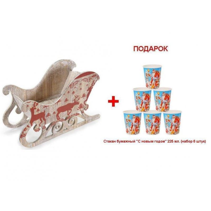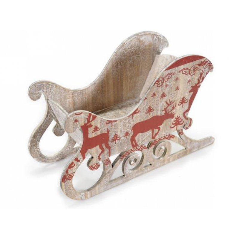 Slitta portaoggetti in legno con renne decorate 21/8,3/13