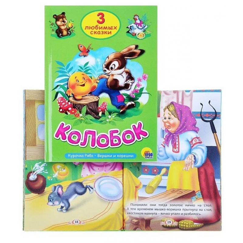 3 любимые сказки "Колобок" "Курочка ряба" "вершки и корешки"