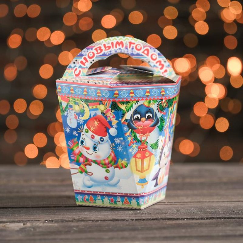 Подарочная коробка "На санках", фонарик, 12,5 х 14 х 14 см