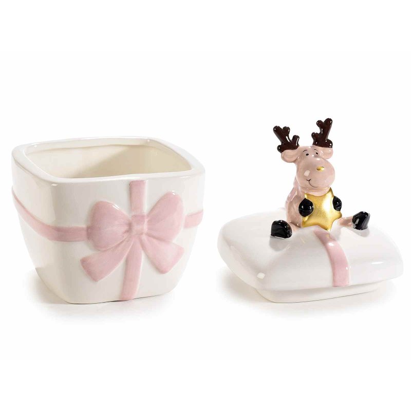 Barattolo di Natale con fiocco e renna con stella di neve in ceramica 10,5 x 11 x 17cm