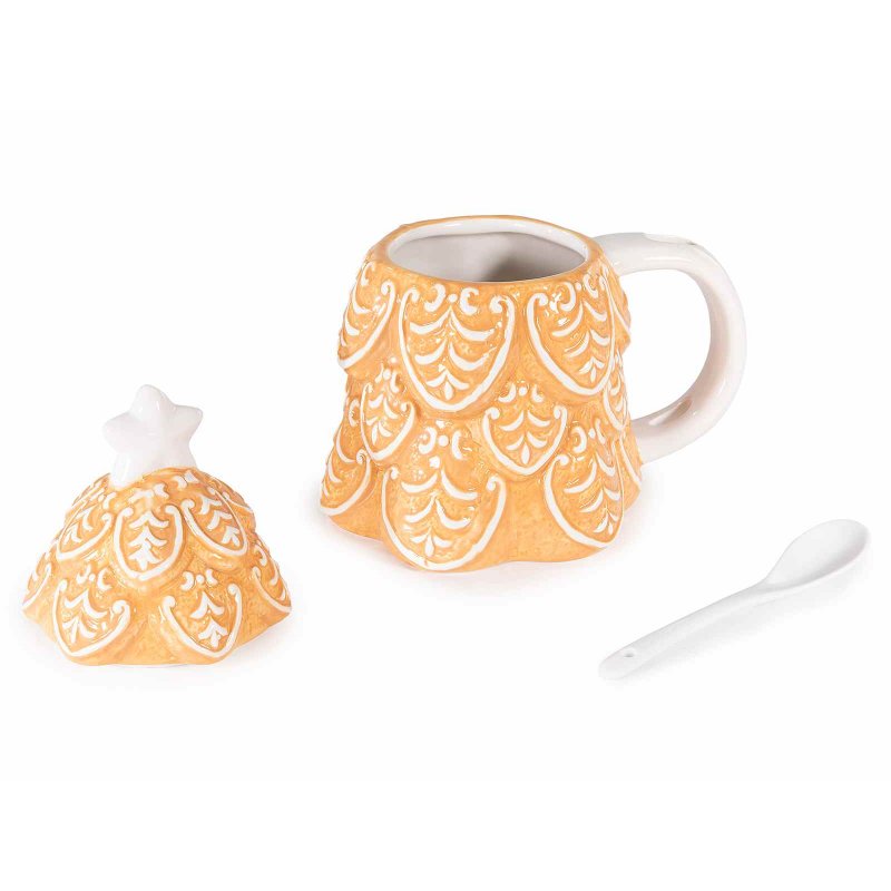 Tazza in ceramica a forma di albero di Natale con coperchio e cucchiaio, 400 ml