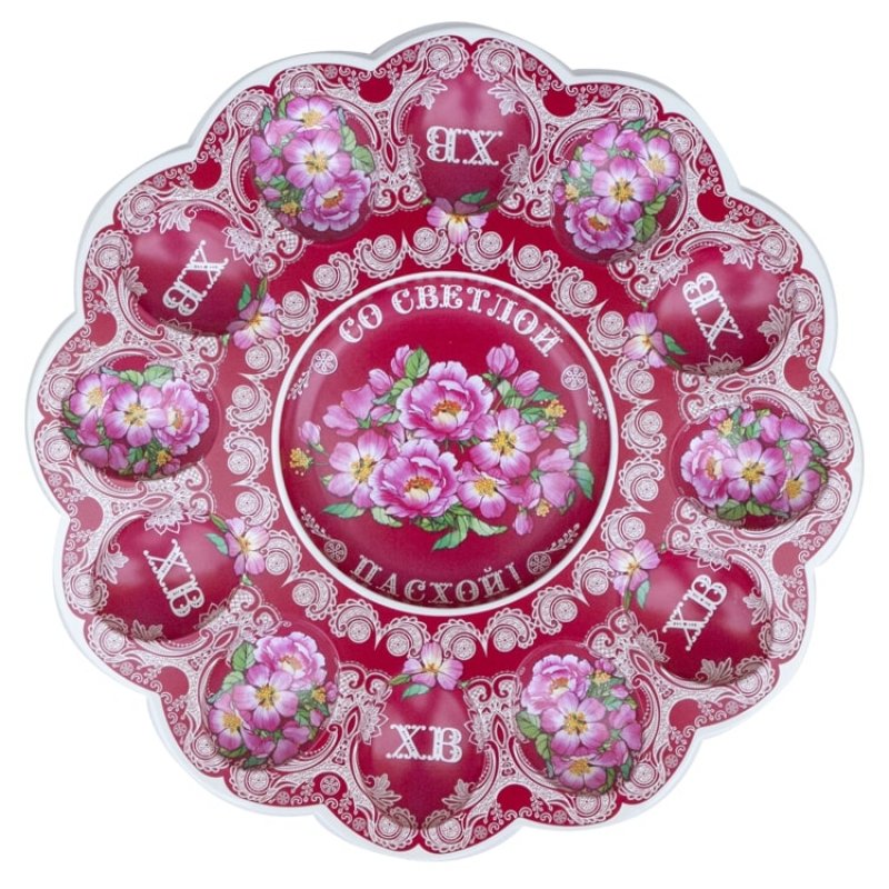Alzata pasquale in plastica per 12 uova e 1 torta pasquale - Fiori