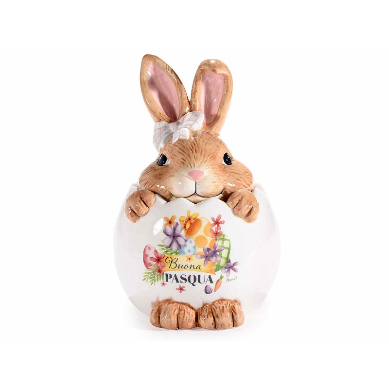 Barattolo alimentare a forma di "Uovo con coperchio Coniglio" in ceramica colorata