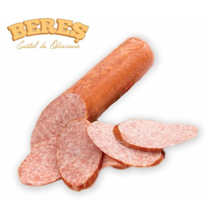 Ingredienti: carne di suino, lardo, aqua, sale, proteina vegetale di SOIA non modificata genetificamente, spezie e aromi (aglio, pepe), stabilizzatori E450, E451 difosfati/polifosfati, zuccheri, LATTOSIO, conservante E250, nitrito di sodio, esaltatore di sapidira E621, glutamato do sodio, aromi, antiossidanti E300, acido ascorbico, colorante E120, carmino. Membrana NON comestibile.