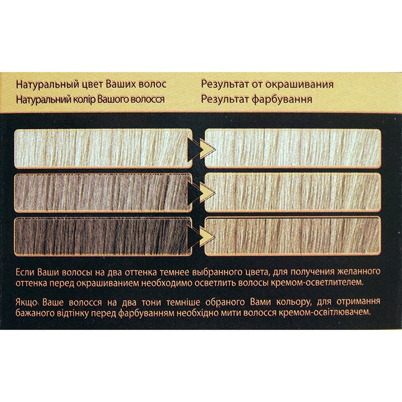Ingredienti:Gel Colorante: Aqua, Ammonia, Acrylates/C10-30 Alkyl Acrylate Crosspolymer, Cocamidopropyl Betaine, Propylene Glycol, Pentasodium Pentetate, Erythorbic Acid, Silicone Quaternium-20, Thiolactic Acid, Disodium Cocamphodiacetate, Glycerin, Royal Jelly, P-Phenylendiamine, P-Aminophenol, Resorcinol, M-Aminophenol, 1-Naphtol. Los componentes pueden variar de un color a otro. Crema Oxigenada: Aqua, Hydrogen Peroxide, Ceteareth-7, Pentasodium Pentetate, Disodium Pyrophosphate, Sodium Stannate, Phosphoric Acid.
