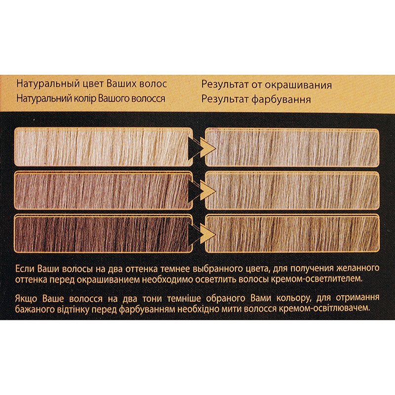 Ingredienti:Gel Colorante: Aqua, Ammonia, Acrylates/C10-30 Alkyl Acrylate Crosspolymer, Cocamidopropyl Betaine, Propylene Glycol, Pentasodium Pentetate, Erythorbic Acid, Silicone Quaternium-20, Thiolactic Acid, Disodium Cocamphodiacetate, Glycerin, Royal Jelly, P-Phenylendiamine, P-Aminophenol, Resorcinol, M-Aminophenol, 1-Naphtol. Los componentes pueden variar de un color a otro. Crema Oxigenada: Aqua, Hydrogen Peroxide, Ceteareth-7, Pentasodium Pentetate, Disodium Pyrophosphate, Sodium Stannate, Phosphoric Acid.