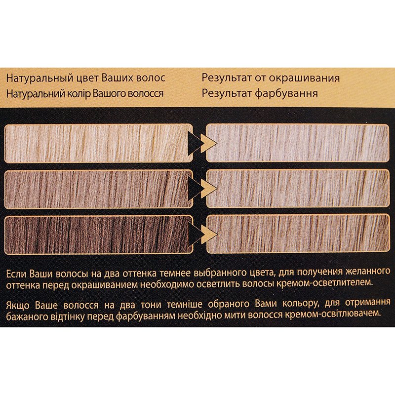 Ingredienti:Gel Colorante: Aqua, Ammonia, Acrylates/C10-30 Alkyl Acrylate Crosspolymer, Cocamidopropyl Betaine, Propylene Glycol, Pentasodium Pentetate, Erythorbic Acid, Silicone Quaternium-20, Thiolactic Acid, Disodium Cocamphodiacetate, Glycerin, Royal Jelly, P-Phenylendiamine, P-Aminophenol, Resorcinol, M-Aminophenol, 1-Naphtol. Los componentes pueden variar de un color a otro. Crema Oxigenada: Aqua, Hydrogen Peroxide, Ceteareth-7, Pentasodium Pentetate, Disodium Pyrophosphate, Sodium Stannate, Phosphoric Acid.