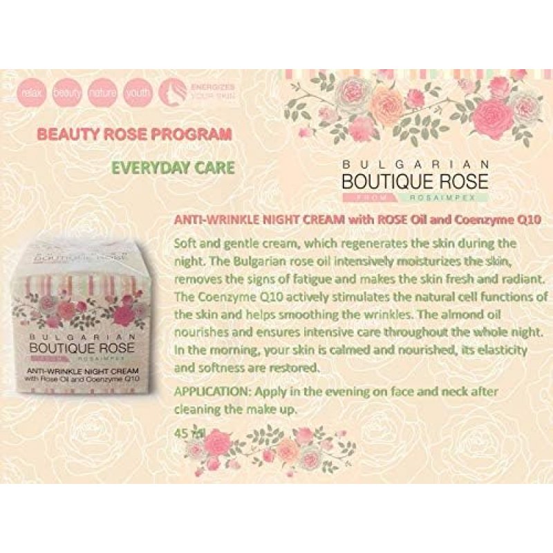 Crema notte antirughe con olio di rosa e coenzima Q10 "BULGARIAN BOUTIQUE ROSE" 45 ml