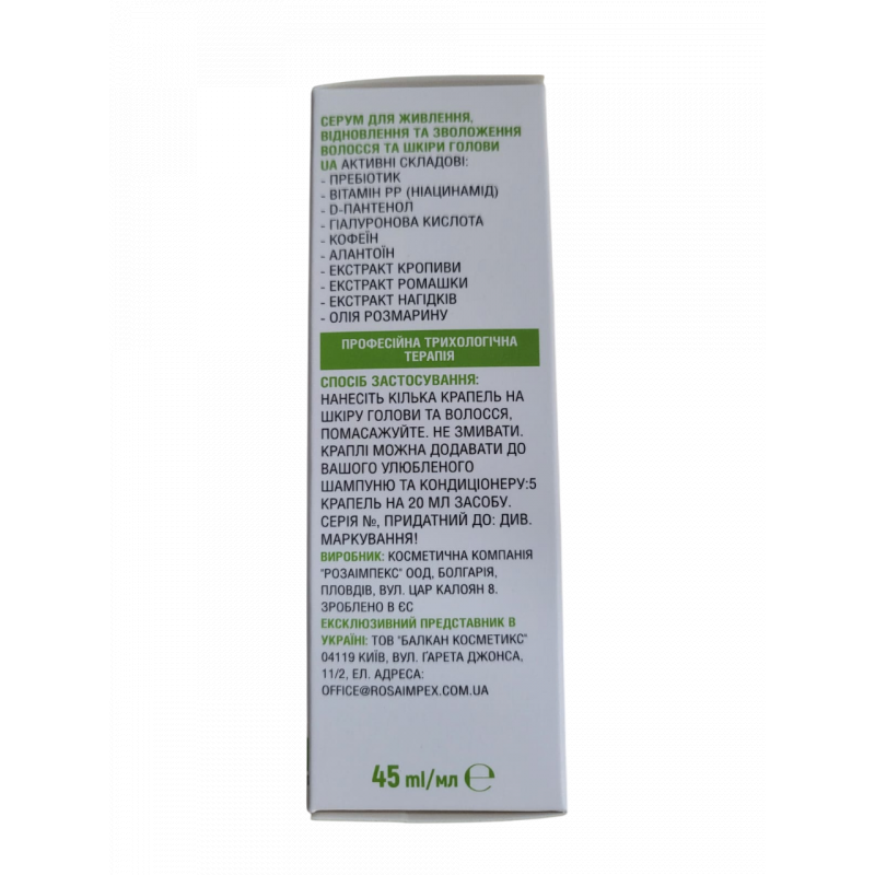 Modo d'uso: applicare alcune gocce su cuoio capelluto e capelli, massaggiare. Non risciacquare. Le gocce possono essere aggiunte al tuo shampoo e balsamo preferiti.